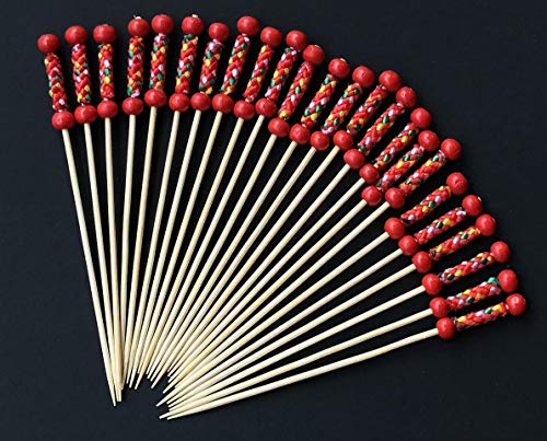 AILEXI Bastoncini per Cocktail 100 con stuzzicadenti in Legno per Feste fronzoli Finger Food Frutta con noccioline di Sandwich - Perle Rosse Giapponesi