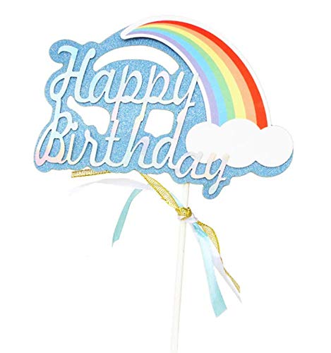 AILEXI Toppers decorati a mano con 1 Glitter torta - Buon compleanno in Arcobaleno Azzurro e Argento