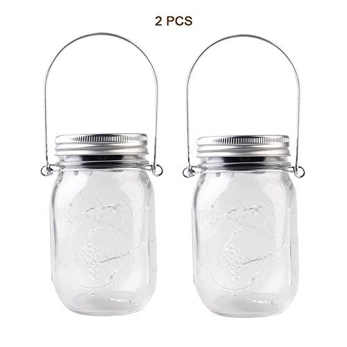 Ailier Lanterna solare, colore che cambia, luci LED per giardino, lanterna da appendere in vetro decorativo, bottiglia fai da te, Outdoor, BBQ, ritrovi, Natale, party, matrimoni, vacanze, bianco caldo, 2 pcs