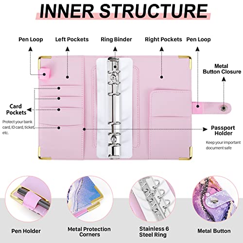 AILIGYGF Raccoglitore di Bilancio A6, Budget Planner Notebook per i Risparmi, Organizzatore di Denaro in Contanti, Pianificatore di Bilancio con Buste e Fogli per il Calcolo Delle Spese(Rosa)