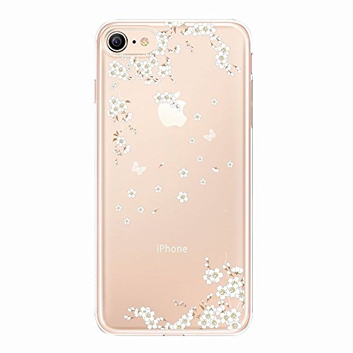 AILRINNI Cover iPhone 8, Silicone Custodia Trasparente Morbida Case [Ultra Sottile] Flessibile TPU Custodia Cover con Disegni per iPhone 8 - Fiore Bianco