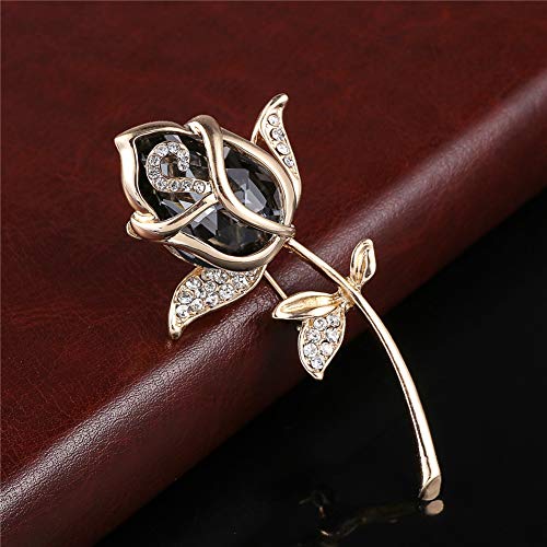 AILUOR Elegante Brillante Fiore Crystal Rose Spilla Pin, Fancy Bellezza Floreale Spilla di Design Pins Nero