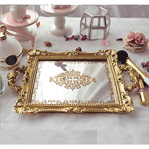 AILZNN Vassoio Vintage con Specchio, Scatola Portaoggetti Porta Gioielli Vintage con Specchio con Due Maniglie Accessori di Decorazione Domestica Classica Europea,B
