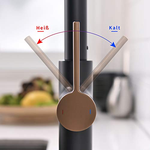 AIMADI Rubinetto da cucina estraibile con rubinetto girevole a 360°, miscelatore per lavello da cucina, colore nero