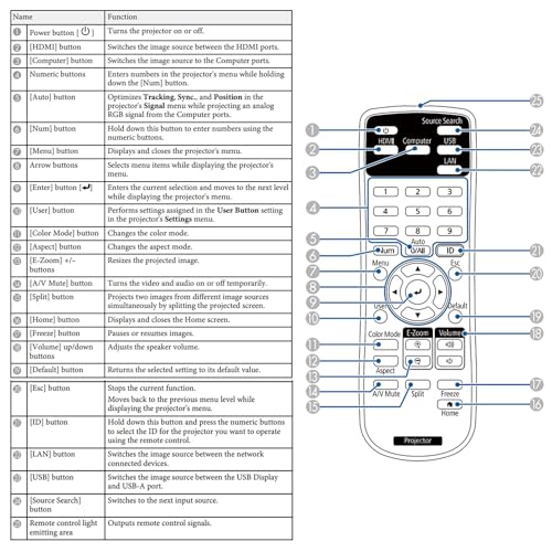 Modello compatibile: 219863500 Telecomando Proiettore universale per Epson EH-TW710 EH-TW740 EH-TW750 EB-W06 EB-W49 EB-W51 EB-W52 EB-X06 EB-X49 EB-X51 EB-X500 EB-L730U EB-L735U EX3280 EX5280 EX9230