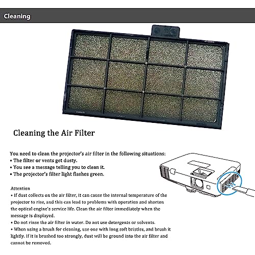 Perfettamente abbinato al modello di proiettore specificato. Basta rimuovere il coperchio del filtro dell'aria, rimuovere il filtro usato e inserire il nuovo filtro.
