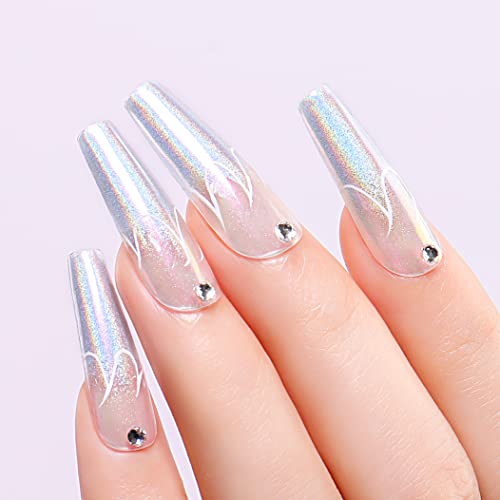 Il pacchetto include: 5 × Chrome Powder ( 0.5g ), 1× Holographic Powder (0.5g). Materiale: la polvere molto fine ha un grande effetto specchio.