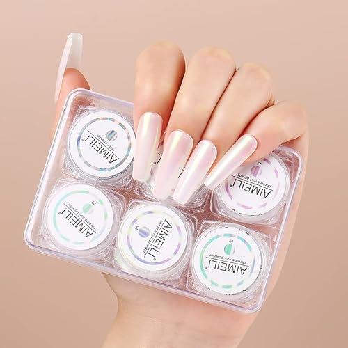 AIMEILI 6 Boxs Polvere Unghie Effetto Specchio, Perla Iridescente Chrome Laser Chameleon Peacock Holographic Pigmento Neon Glitter Metallizati Kit di Decorazione Nail Powder