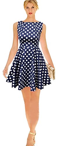un abito midi maniche blu marino con pois bianchi con cerniera fino al lato e vita aderente. E 'skater d'epoca e uno stile di linea per dare quel bagliore in più per gonna, è un bene per la danza e l'estate usura.