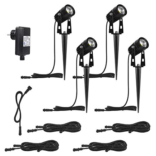 AIMHEIM Faretti da Giardino Luci Proiettore LED Spot Esterno Bianco Caldo 3000K Faretto Led da Esterno 12V 4 in 1 Faretti Led Esterno per Giardino,Vialetto,Cortile Proiettore Da Giardino