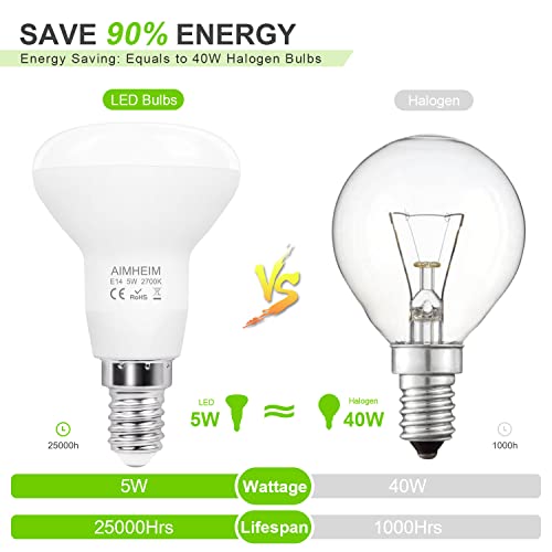AIMHEIM Lampadine LED E14 R50 Luce Bianco Caldo 2700K, E14 LED 5W 550 Lumen Equivalente a 40W, R50 E14 LED Lampade per Lampadario da Cucina, E14 LED Riflettore Non Dimmerabile, Pacco da 2