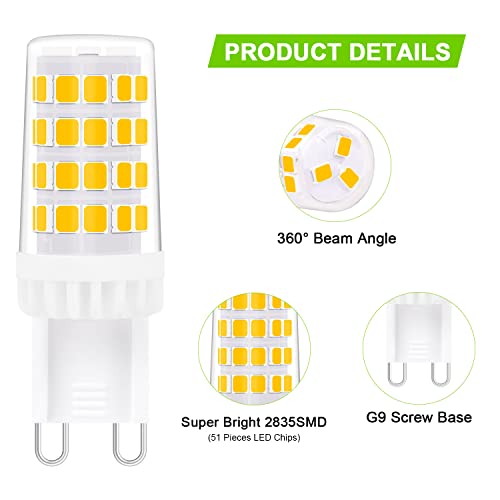 【Super risparmio energetico】 La lampadina adotta 21 LED 2835-SMD, 4W, 420LM. Le lampadine LED a risparmio energetico G9 sono un sostituto ideale per le tue lampadine alogene da 40 watt con soli 4 watt, risparmiando il 90% sulla bolletta elettrica.
