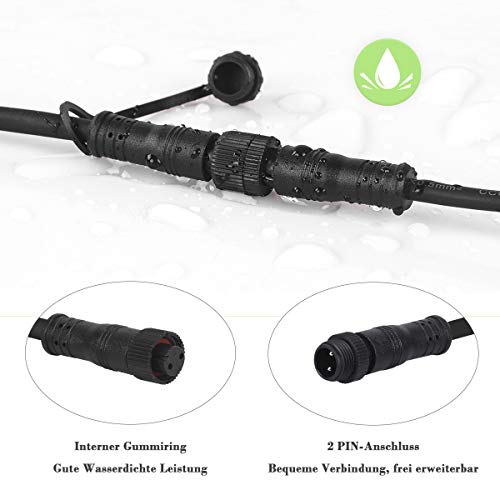 ◆ 【IP68 Impermeabile】 Prolunga impermeabile IP68, impermeabile migliore di IP44. Il tappo a vite sul connettore del cavo rende l'acqua completamente inaccessibile, sicura per l'illuminazione esterna.