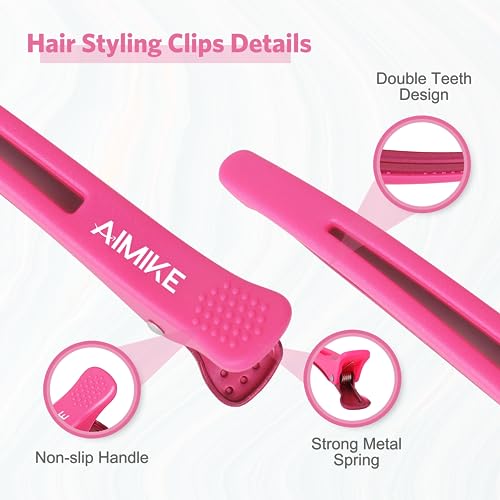【Materiale Premium Aggiornato】Le pinze per capelli per acconciature AIMIKE vantano una costruzione di qualità premium. La parte superiore è fatta di resistente plastica ABS. Mentre il fondo liscio in metallo è elettroplaccato per una maggiore resistenza all'attrito e alla ruggine. Grazie alla molla di metallo altamente elastica, queste pinza per capelli a becco di anatra tengono facilmente in posizione grandi quantità di capelli in modo sicuro.