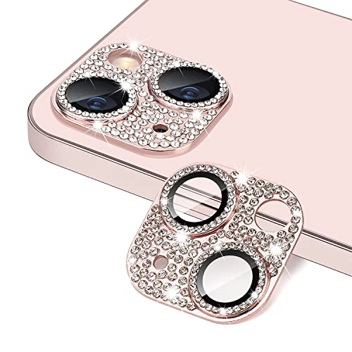 AiMok Bling Pellicola Fotocamera Compatibile con iPhone 13/iPhone 13 Mini, HD Vetro Temperato Alluminio Rim Protezione Lente Pellicola Anti Graffio Custodia per iPhone 13/iPhone 13 Mini - Rosa
