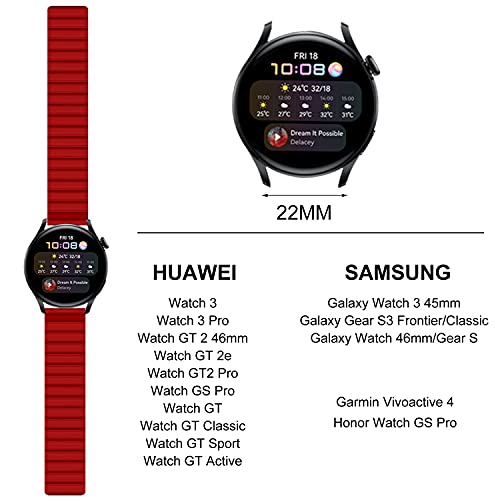AiMok 22mm Cinturino Compatibile con Huawei Watch GT 3 Pro 46mm/Watch GT 3 46mm/Watch GT Runner, Silicone Magnetico Sport Ricambio Cinturini per Xiaomi Watch S1/Watch S1 Active/Xiaomi Mi Watch-Rosso