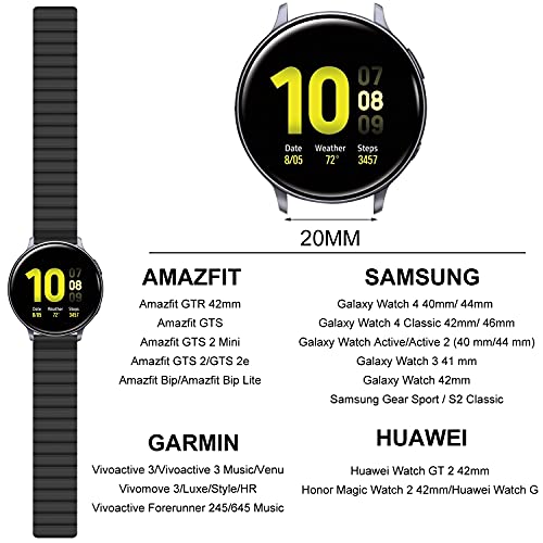 AiMok 20mm Cinturino Compatibile con Samsung Galaxy Watch 4/4 Classic/Active/Active 2 40/44 mm, Silicone Magnetico Sport Ricambio Cinturini per Samsung Galaxy Watch 3 41mm/Watch 42mm/Gear Sport - Nero