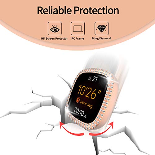 AiMok Custodia Compatibile con Fitbit Versa 3/Sense Vetro Temperato, Bling Case, Cornice in HD, Ultra Sottile, Custodia Protettiva in Cristallo agli Urti avec Fitbit Versa 3/Sense (Oro rosa)