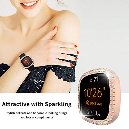 AiMok Custodia Compatibile con Fitbit Versa 3 / Sense, Antigraffio Bling Custodia Protettiva in Cristallo Resistente Agli Urti Cover per Fitbit Versa 3 / Sense (Oro rosa)
