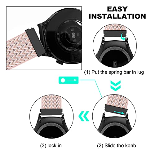 AiMok Nylon Cinturino Compatibile con Garmin Vivoactive 3/Vivoactive 3 Music/Venu/Forerunner 245, 20MM Regolabile Sportiva Nylon Ricambio Elastica Cinturino per Garmin Vivomove 3/Luxe/Styl - Rosa