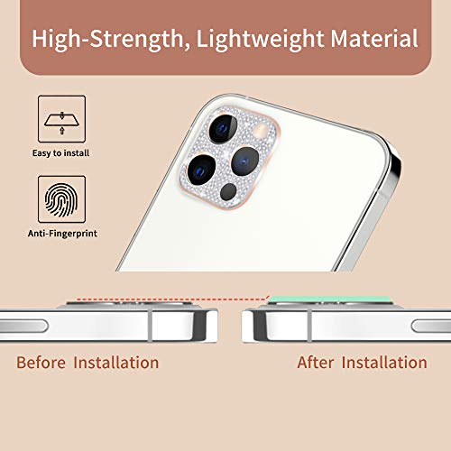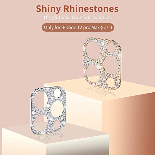 AiMok [2 Pezzi Bling Pellicola Fotocamera Compatibile con iPhone 12 PRO Max, Diamante Copriobiettivo Anti Graffio Cristallo Protettiva Custodia per iPhone 12 PRO Max (Argento + Oro Rosa)
