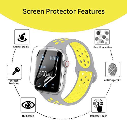 AiMok 4 Pezzi TPU Pellicola Protettiva + 2 Pezzi Cinturino compatibile con Apple Watch Series 6 / Watch SE 44mm, Cinturino in Silicone Ricambio per Apple Watch Series 6 / Watch SE 44mm (Nero + Giallo)