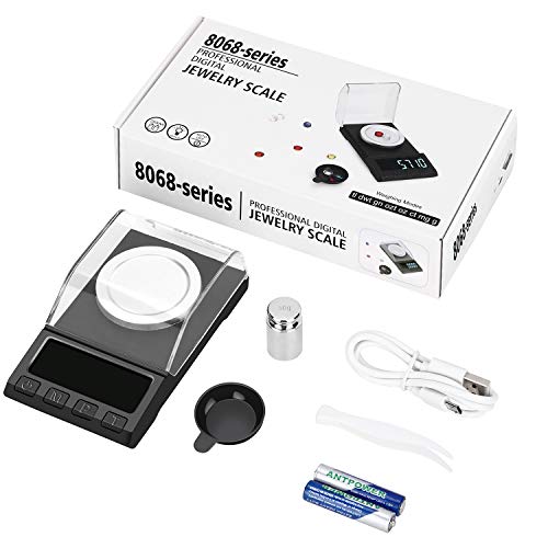 AIMTOP Bilancia di precisione digitale tascabile 50g/0,001g, con display LCD, con milligrammi, bilancia per gioielli, con pesi di calibrazione, pinze, ciotola di peso, cavo USB