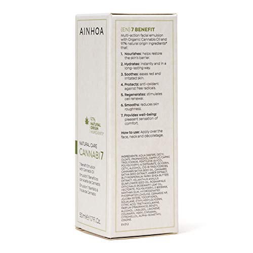 AINHOA Cosmetics - CANNABI7 Emulsione 7 Benefici con Olio di Cannabis 50 ml - Crema viso Pelle Normale/Mista con Canapa - Cosmesi Naturale per Donna/Uomo - Giorno/Notte- Qualità Professionale