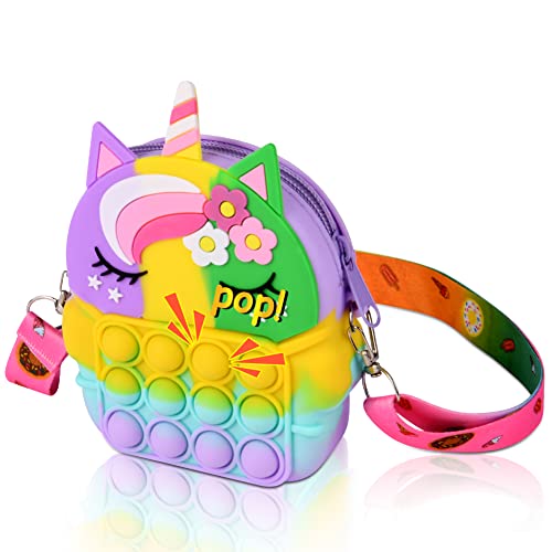 Ainiv Poppet Pop it Borsa, 2 in 1 Unicorno Fidget Bag Pop Bubble PushToy, Borsa a Tracolla con Tracolla in Silicone,Regalo Giochi per Bambini 5 6 7 8 anni (Macaron)