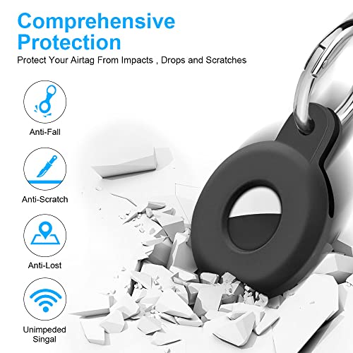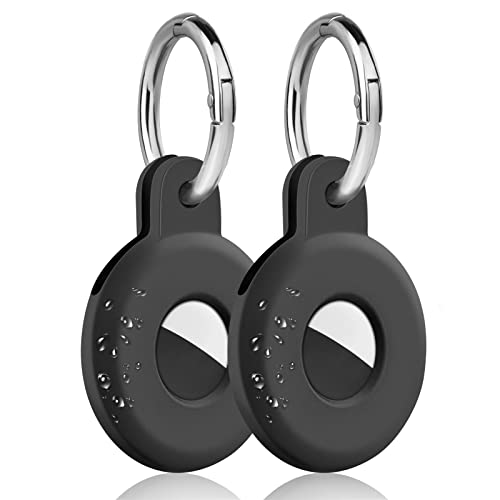 Ainiv Portachiavi AirTag, 2 Pezzi Custodia AirTag Portachiavi in Spesso Silicone, Localizzatore di Chiavi AirTag Portatile per Zaini e Animali Domestici, Nero Mini Cover Protettiva Tracker per AirTag