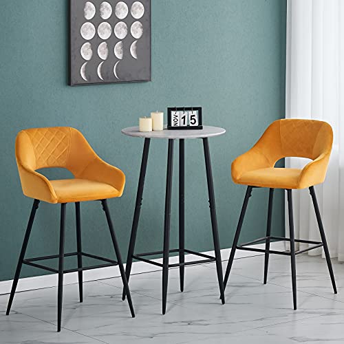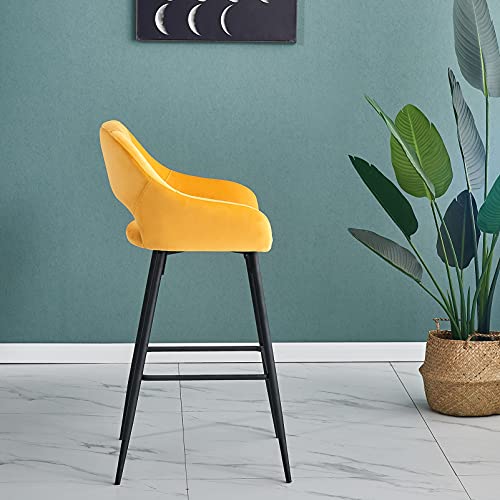 AINPECCA - Set di 2 sgabelli da bar in velluto nero per colazione, sala da pranzo, bar, sedie ad altezza fissa, con struttura in metallo e poggiapiedi per bar, bancone, cucina e casa (2, oro)