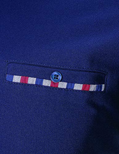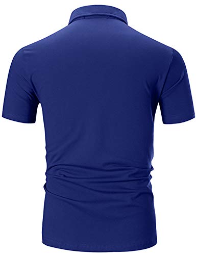 AIOIDI Polo da Uomo Manica Corta Colletto Plaid Regular Fit T Shirt,Blu 2,XL