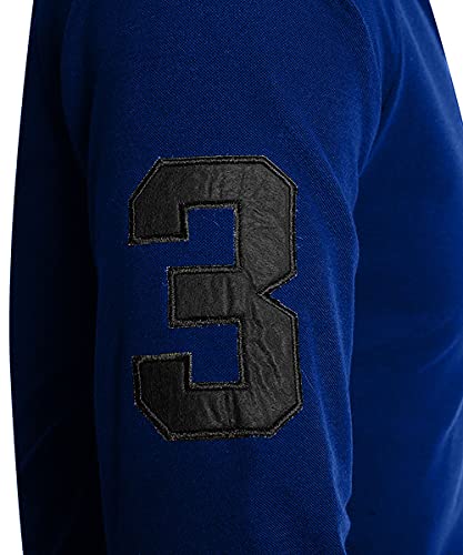 AIOIDI Polo Uomo Manica Lunga Ricamo Giraffa Colletto Contrasto Elegante Sportivo Golf Tennis Tops,Blu 2,M