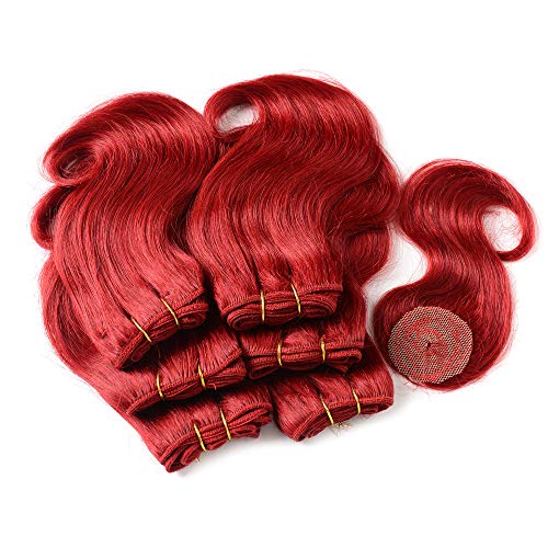 Aiokrtse Capelli vergini brasiliani 100% capelli umani fasci brasiliani onda del corpo dei capelli 6 pacchi 8 pollici con 1 piccola chiusura Colore rosso 210 grammi