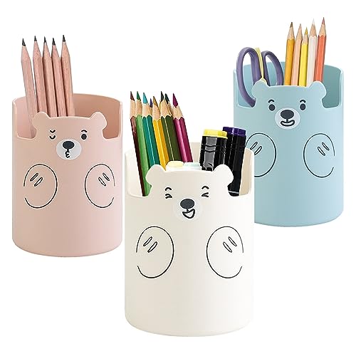 Aipeeo Portapenne da Scrivania, 3 pezzi, Organizer Multifunzione da Scrivania, Portapenne, Scrivania, Rotonda, in Plastica, per Uffici, Case e Scuole (Rosa, bianco, blu)