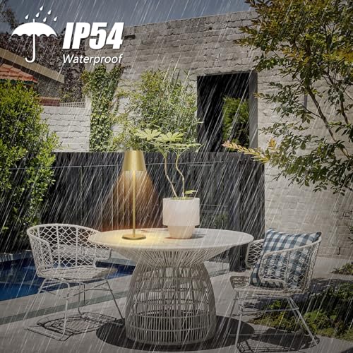 Aipsun 2 Pezzi Lampada da tavolo senza fili,lampada tavolo led ricaricabile,6000mAh,Lampada da tavolo a batteria in alluminio dimmerabile(2700k-6000k),IP54,ristorante,camera da letto,bar(Oro)