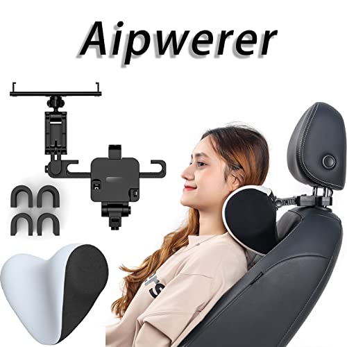 Aipwerer Poggiatesta Auto,Morbido Memory Foam In Lattice Cuscino Cervicale Auto con Supporto Per Telefono Girevole a 360°, Retrattile e Staccabile Cuscino Viaggio,Appoggia Testa Per Auto (Bianco)
