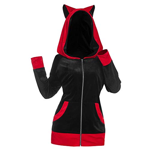 Aiqing Felpa con Cappuccio Scozzese a Maniche Lunghe da Donna Felpa con Orecchie di Gatto Maglione con Cappuccio e Cerniera Tasca con Cerniera