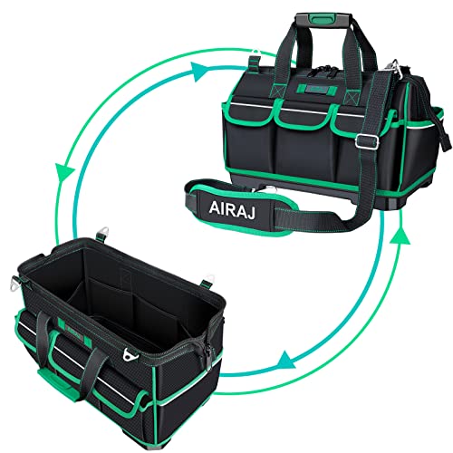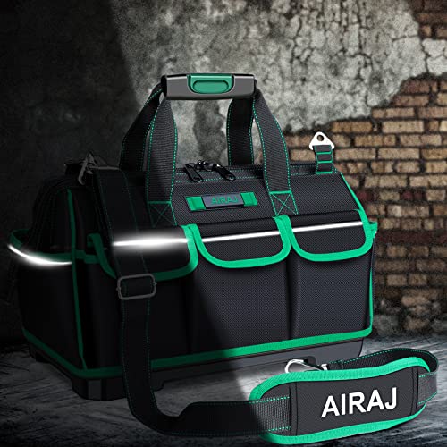 AIRAJ Borsa porta attrezzi (40 x 23 x 28 cm) con striscia riflettente, Tracolla Regolabile, Fondo rigido in plastica spessa, 16 tasche multiple, Grande Borsa Porta Attrezzi Professionale