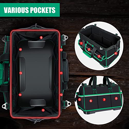 【Multitasca e Grande Capacità】Ci sono 8 tasche nella borsa degli attrezzi e 8 tasche all'esterno. Queste tasche possono essere ordinate per contenere alcuni piccoli strumenti come trapani, seghe, chiavi, pinze, martelli, misure a nastro, ecc.
