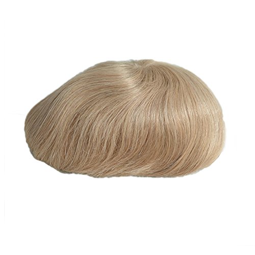 AIRAO Tutta La pelle PU Poli Toupet Parrucchino Sostituzione Protesi Capelli Uomini Parrucche Sbiancato Nodi Invisibile Aspetto Naturale- Capelli Umani Indiani #22R (Medio Bionda)