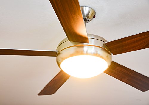 Diametro delle pale 132 cm, per stanze fino a 25 m² / rivestimento del ventilatore da soffitto in nickel satinato, pale MDF reversibili color argento / noce, Installazione possibile anche su soffitti inclinati