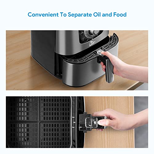 Pulsanti di tempo e temperatura per un facile utilizzo: tempo (0-60 minuti), temperatura (80-200 gradi). I regolatori di tempo e temperatura facilitano la regolazione del tempo e della temperatura perfetti per ogni tipo di cucina, sia morbida che dura, indipendentemente dal gusto. Le patatine sono incredibilmente croccanti e succose, e bistecche e torte possono essere preparate rapidamente e facilmente, quasi senza olio. Pollo e carne di manzo rimangono deliziosi e succosi, mentre il grasso viene ridotto fino all'85%.