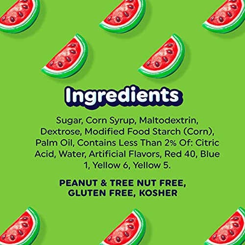 Ingredienti: zucchero, sciroppo di mais, maltodestrina, destrosio, amido alimentare (mais), olio di soia parzialmente idrogenato, acqua, acido citrico, aroma artificiale, colori artificiali, rosso