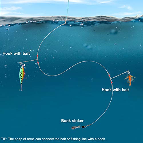 AIRKOUL Wire Trace Leader Rig in Acciaio Inox a 2 Bracci, Attrezzatura da Pesca Girevole con Perline ad Alta Resistenza, 10pcs