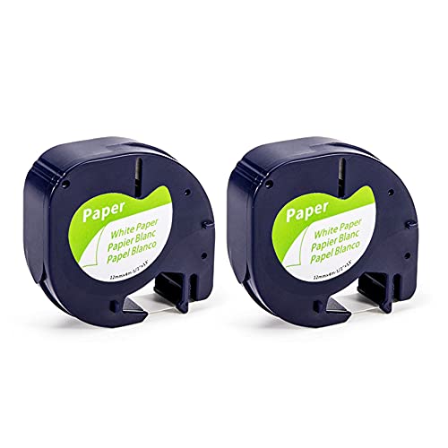 Airmall, Nastri di ricambio in plastica compatibili con nastri Dymo Letratag, 12 mm x 4 m (nero su bianco, giallo, rosso, blu, verde) per etichettatrici LT-100H, LT-100T, LT-110T, QX 50, XR, XM, 2000 Plus, 5 rotoli