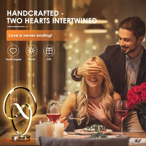 2 Cuori Intrecciati - Questa lampada da tavolo unica, con la sua moderna spirale fluente e a forma di cuore, se stai cercando una decorazione per il tuo scaffale TV, il tuo comodino, il tuo tavolino da caffè o stai pensando a un regalo per i tuoi amici e la tua famiglia, questa lampada da tavolo è la scelta ideale