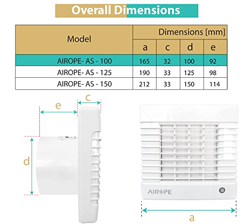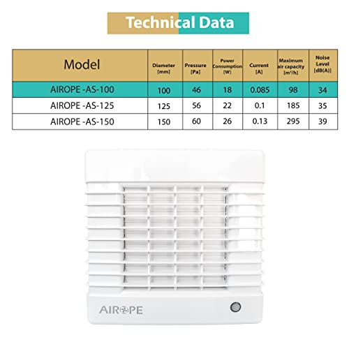 AIROPE-AS-100 mm,Ventola Estrazione,Ventilazione con Alette Interne Automatiche,Aspiratore per Bagno, Wc, Cucina,Buro a Basso Consumo Energetico,Garanzia 5 ANNI
