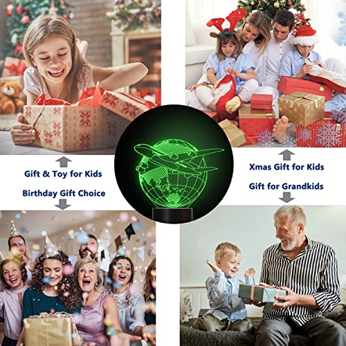 Airplane 3D Illusion Night Light LED Earth Lampada da tavolo 16 regali di compleanno a colori per ragazzi Uomini Pilot Office Room Decoration