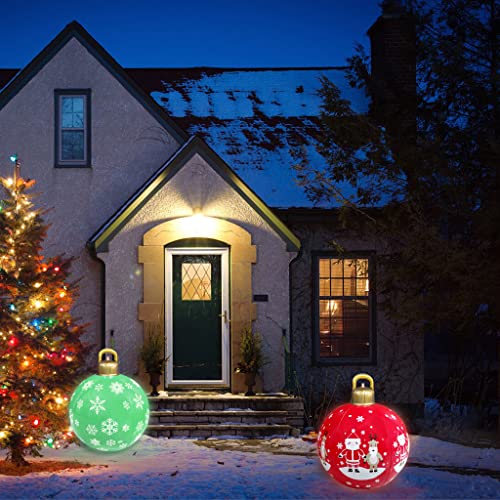 AirSwim 2 palline di Natale gonfiabili in PVC, giganti da 61 cm, decorazione natalizia per esterni, con luci a LED, per esterni, cortile, prato, portico, Babbo Natale, fiocco di neve verde